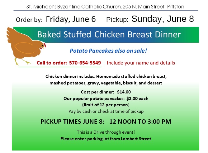 Sunday, June 8 – Pickup 12:00 noon to 3 pm